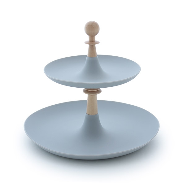 Deze tweedelige etagere is gemaakt van siliconen en hout. Ook afzonderlijk zijn ze te gebruiken als leuke serveerschaaltjes. Zweeds design. (kG design)