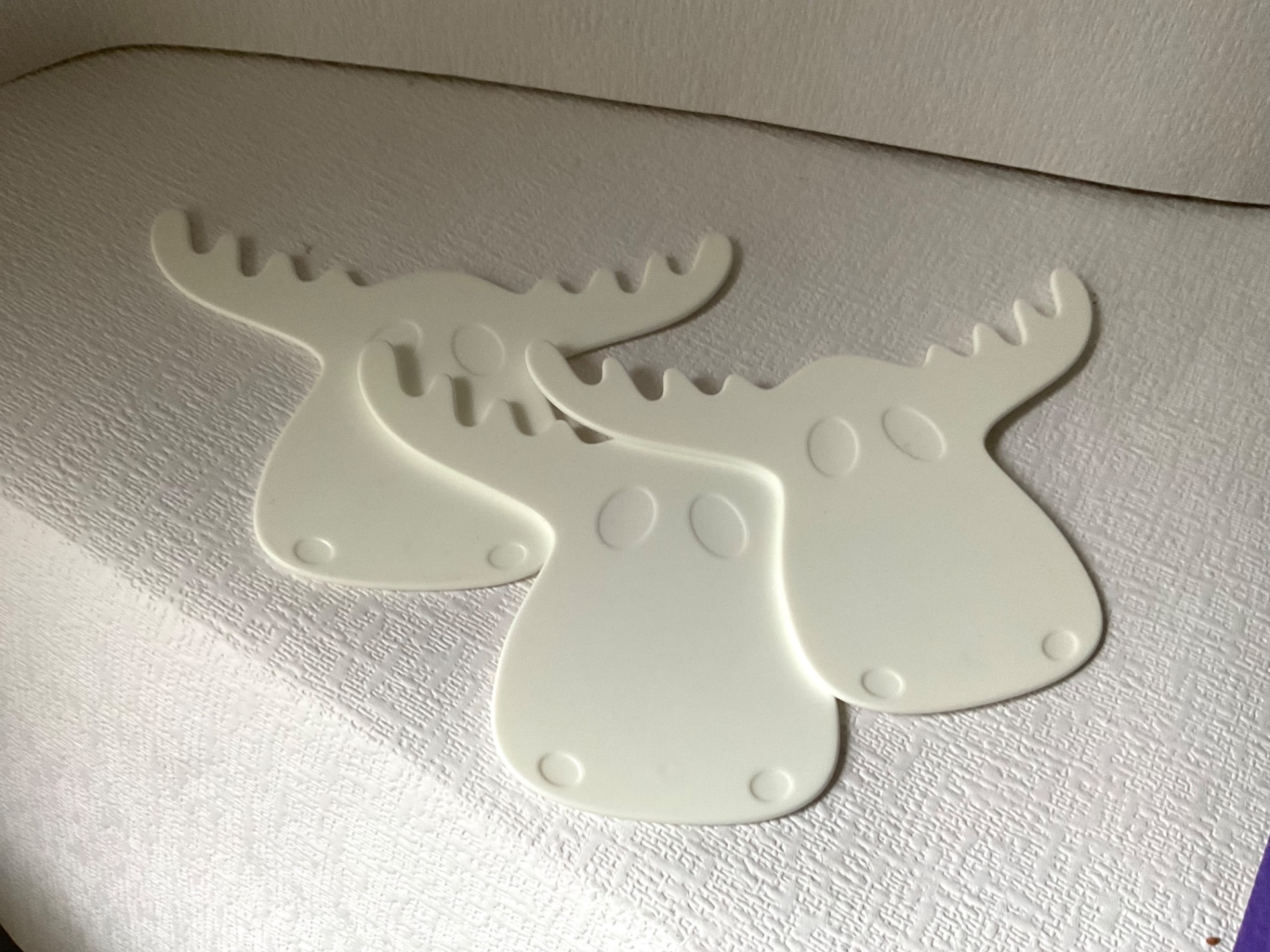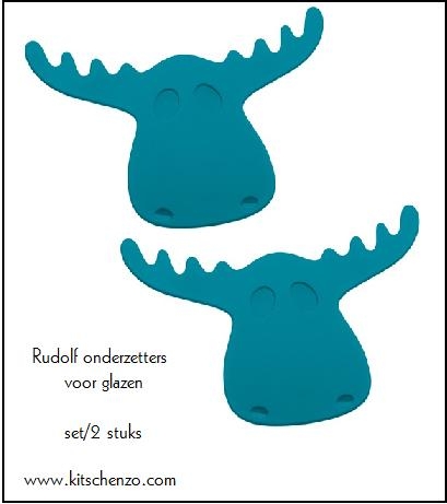 Set van 2 onderzetters RUDOLf het rendier van Koziol.  100 % clean kunststof, foodsafe.