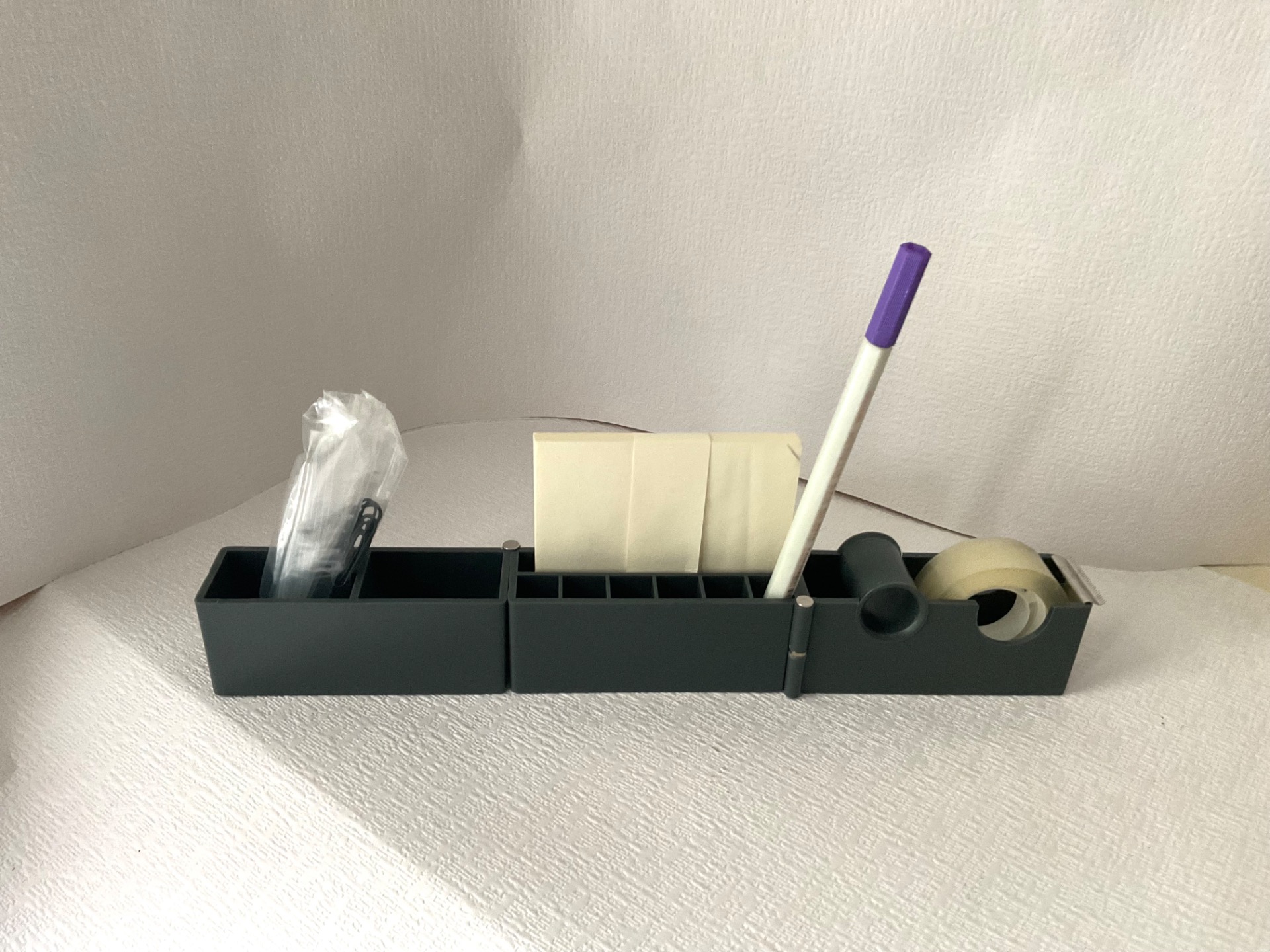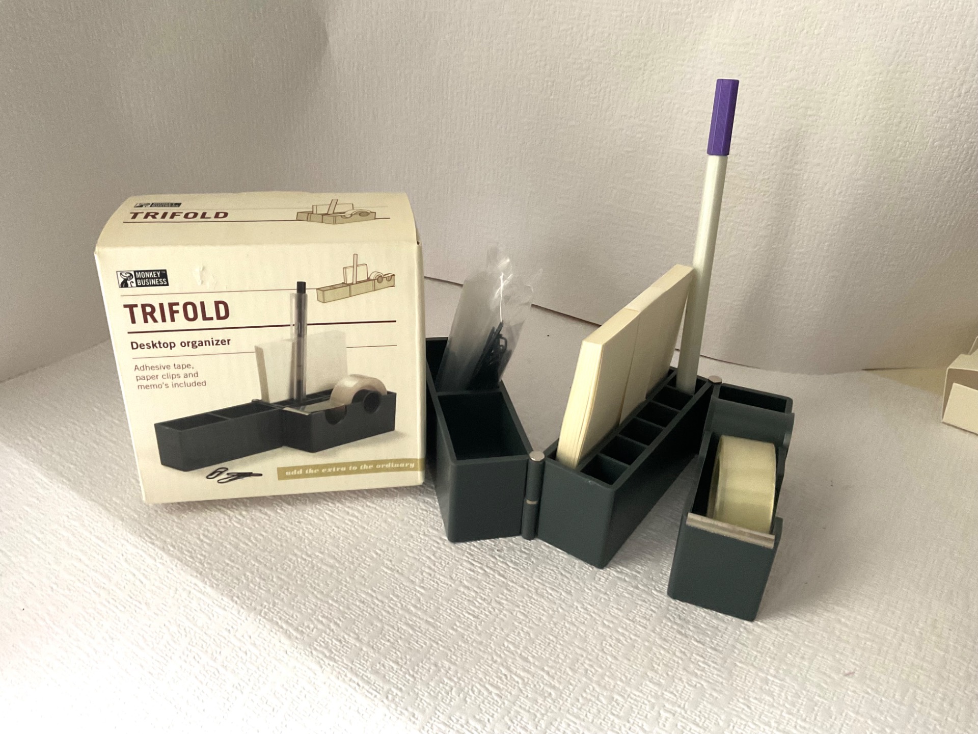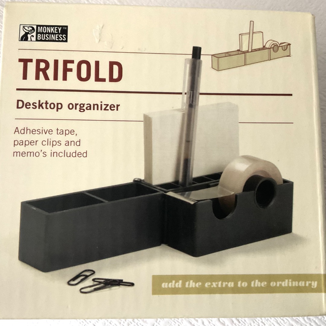 Deze handige alles in 1 bureau-organizer van Monkey business biedt ruimte voor je schrijfbenodigdheden, maar door zijn compacte vorm neemt hij erg weinig ruimte in. Hij kan op verschillende manieren neergezet worden, net zoals je zelf wilt. Inclusief plakband, memo's en paperclips